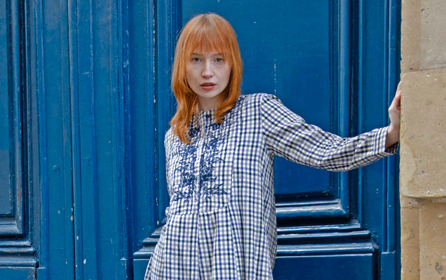 Chemise entièrement boutonnée en voile de coton BIO imprimé à la main avec un tampon en bois, selon la technique traditionnelle du "block print". Son imprimé exclusif Zen Ethic a été dessiné et réalisé au sein de notre atelier.